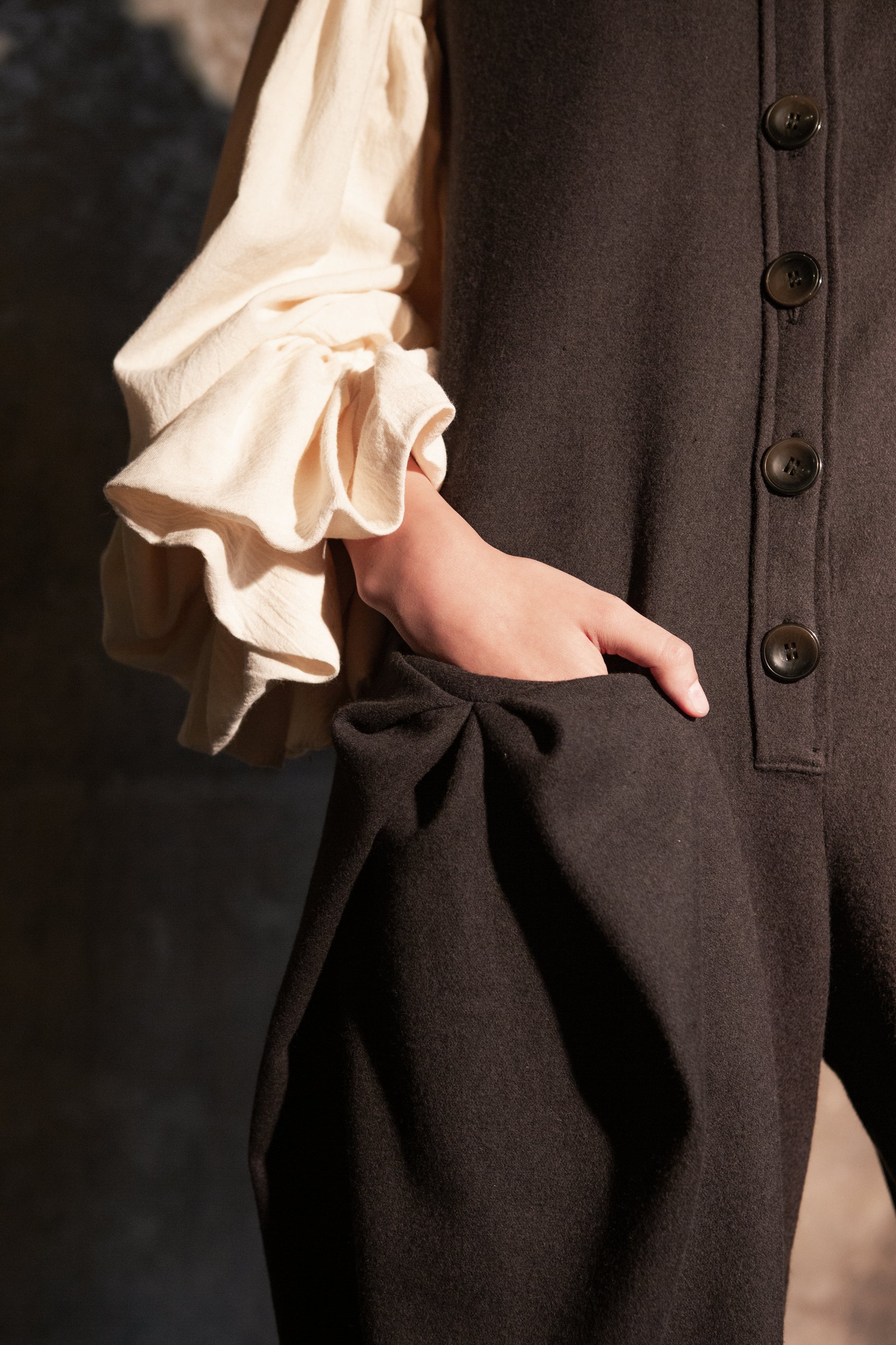 So please specify in the text box the wool colour you wish for your jumpsuit and we will contact you to establish all the details regarding the wool fabric type, color and measurements.