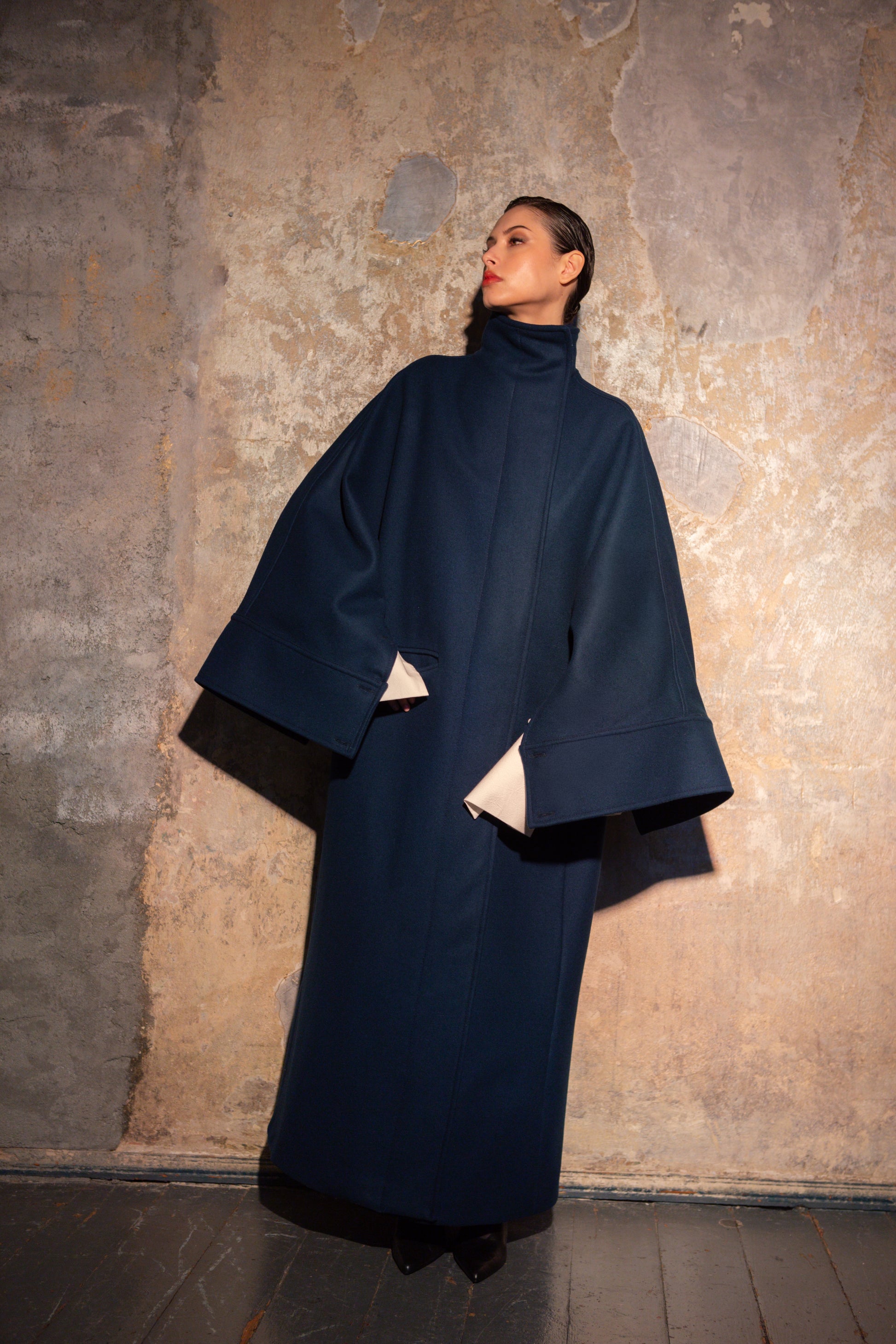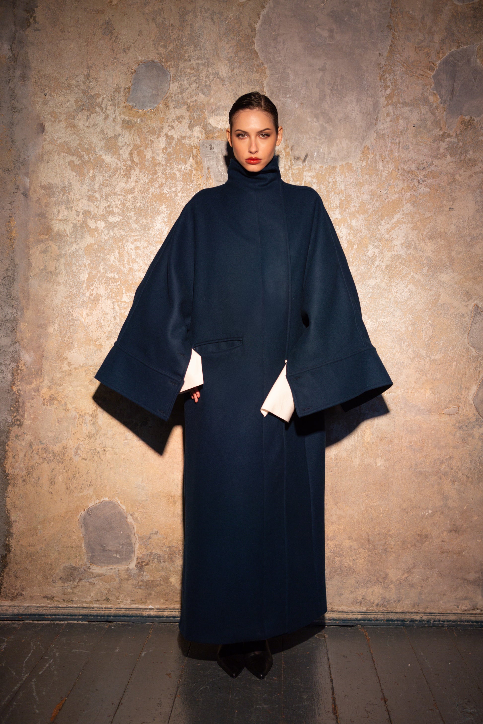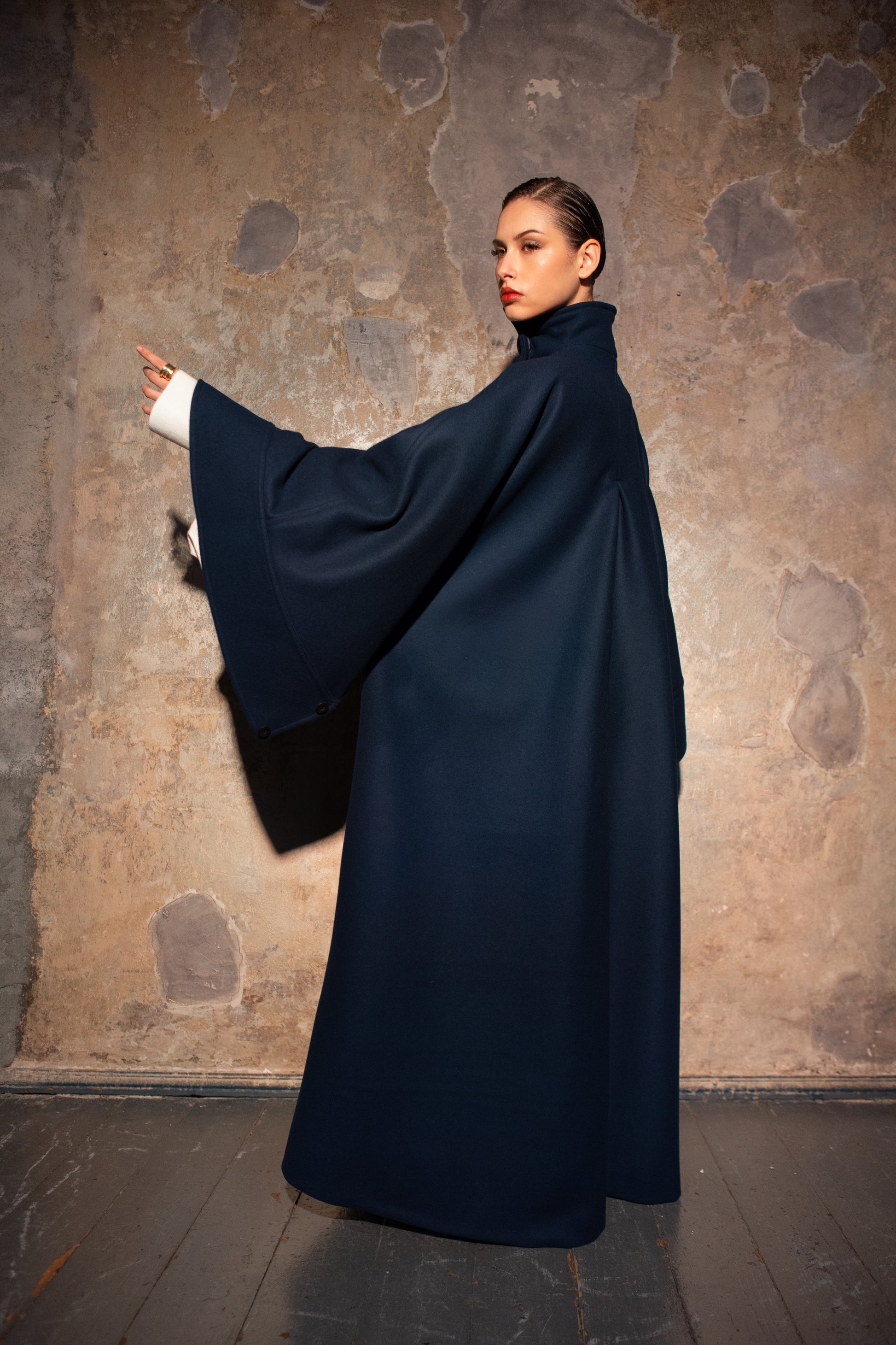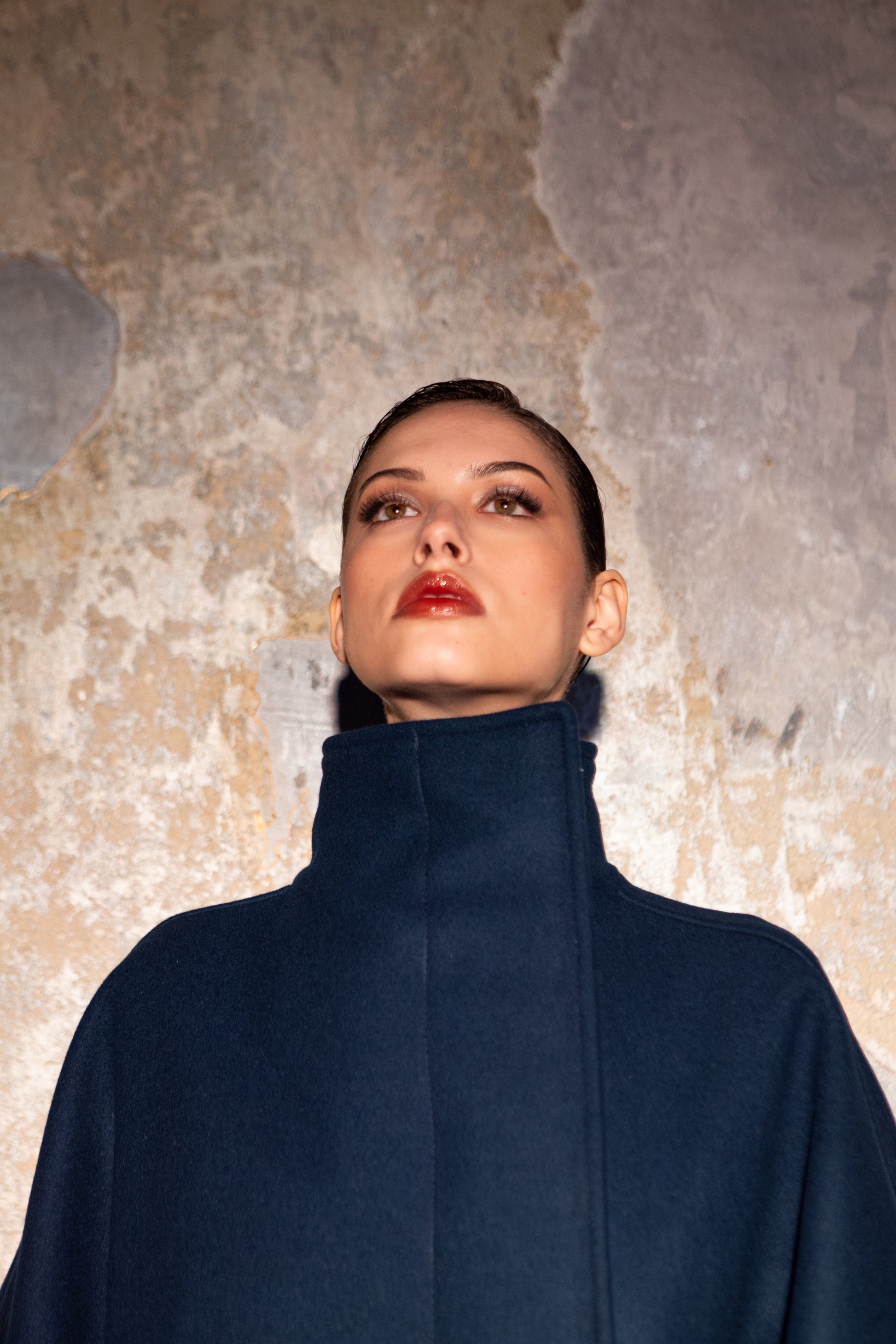 A signature coat and cape crafted in time and sculptural lines. A mood that never dies.